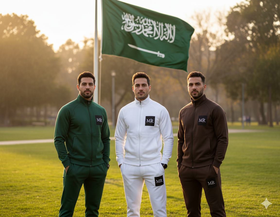 “فخر يجمعنا، وأناقة تليق بطموحنا. مجموعة MR الرياضية بألوان تعكس أصالة هوية المملكة. تم تصميم هذه القطع بعناية لتناسب التجمعات الرياضية والوطنية، لتكون جزءاً من إنجازاتك اليومية. MR.. حيث تلتقي الأصالة بالعصرية.”