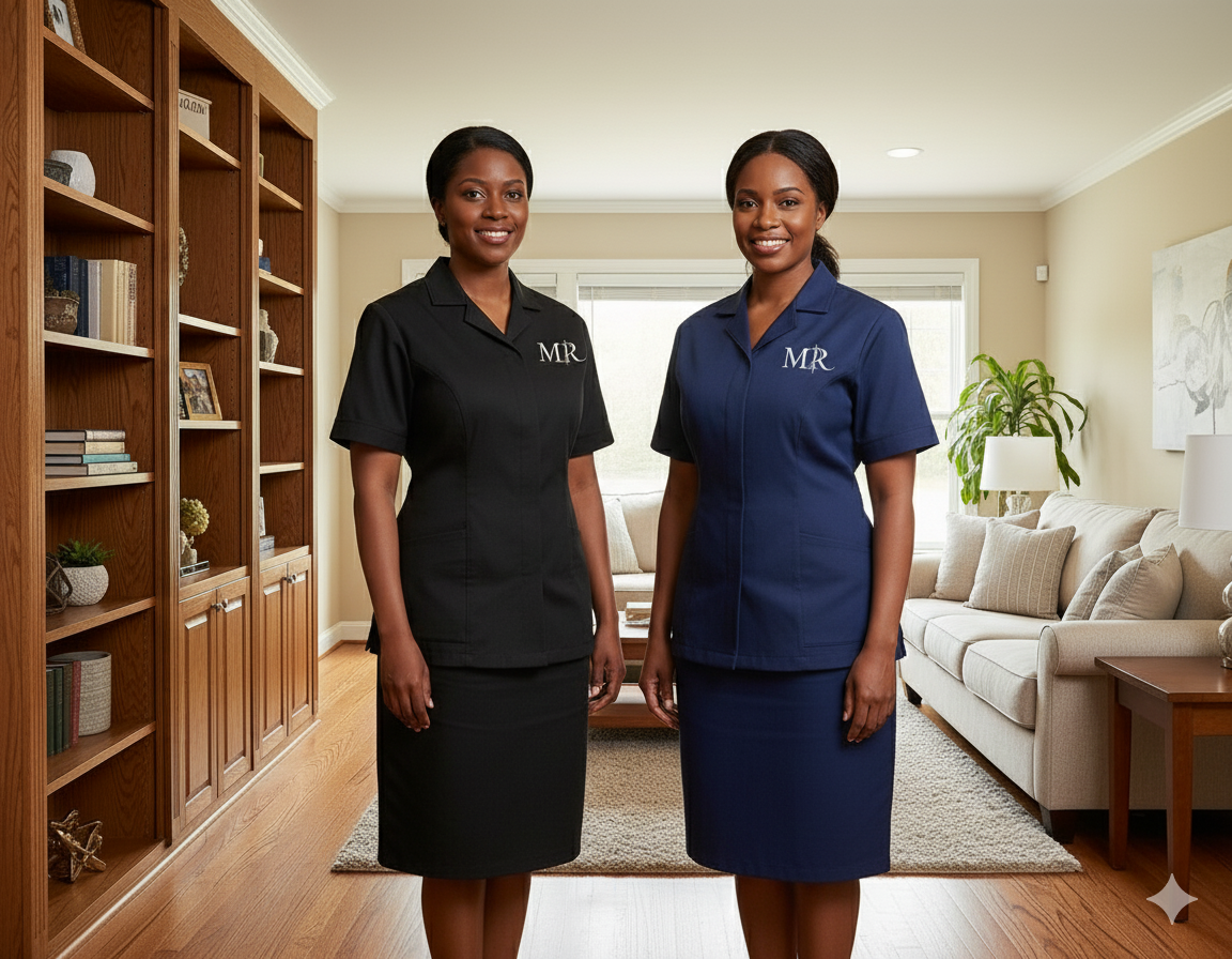 ارتقِ بمستوى الخدمة في منزلك أو منشأتك مع أزياء طاقمنا الرسمية. صُمم هذا الزي بأسلوب كلاسيكي أنيق يجمع بين الراحة التامة والمظهر المرتب. تتوفر الأطقم باللونين الأسود والكحلي، مع تطريز دقيق لشعار علامتنا التجارية، مما يضمن لموظفيك مظهراً يعكس الرقي والاهتمام بأدق التفاصيل.”